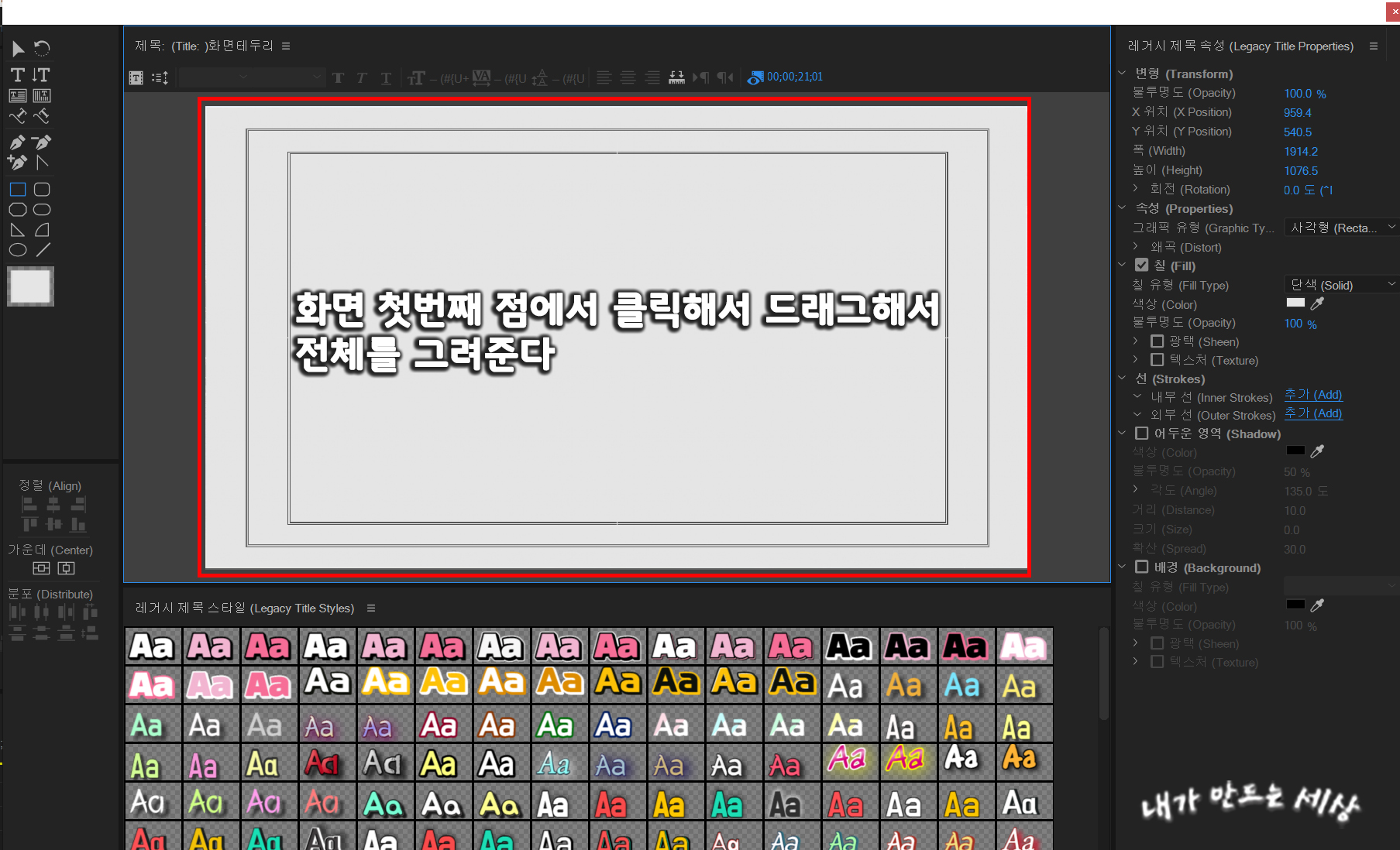 5. 화면 왼쪽 위에 있는 모소리에 최대한 맞게 클릭한 후 드래그해서 전체를 그려줍니다