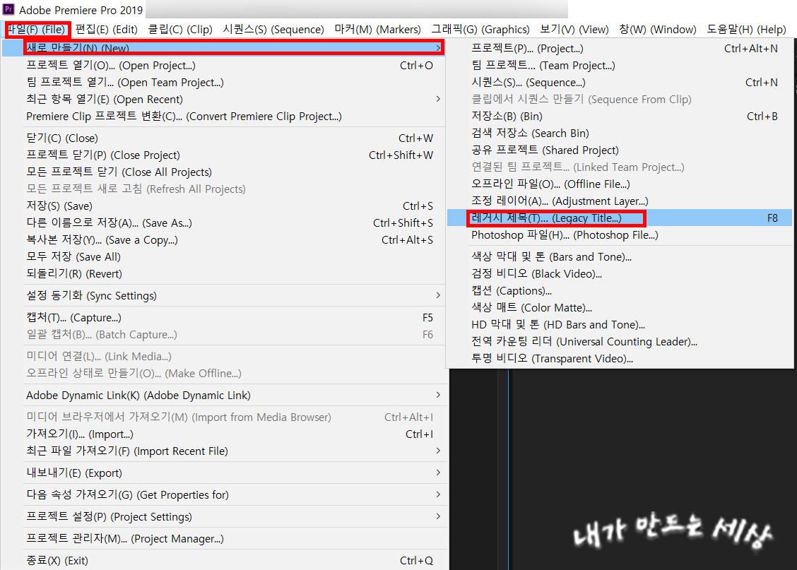 2. 프리미어프로 상단 메뉴에서 File(파일)을 클릭하고 New(새로 만들기)를 클릭합니다