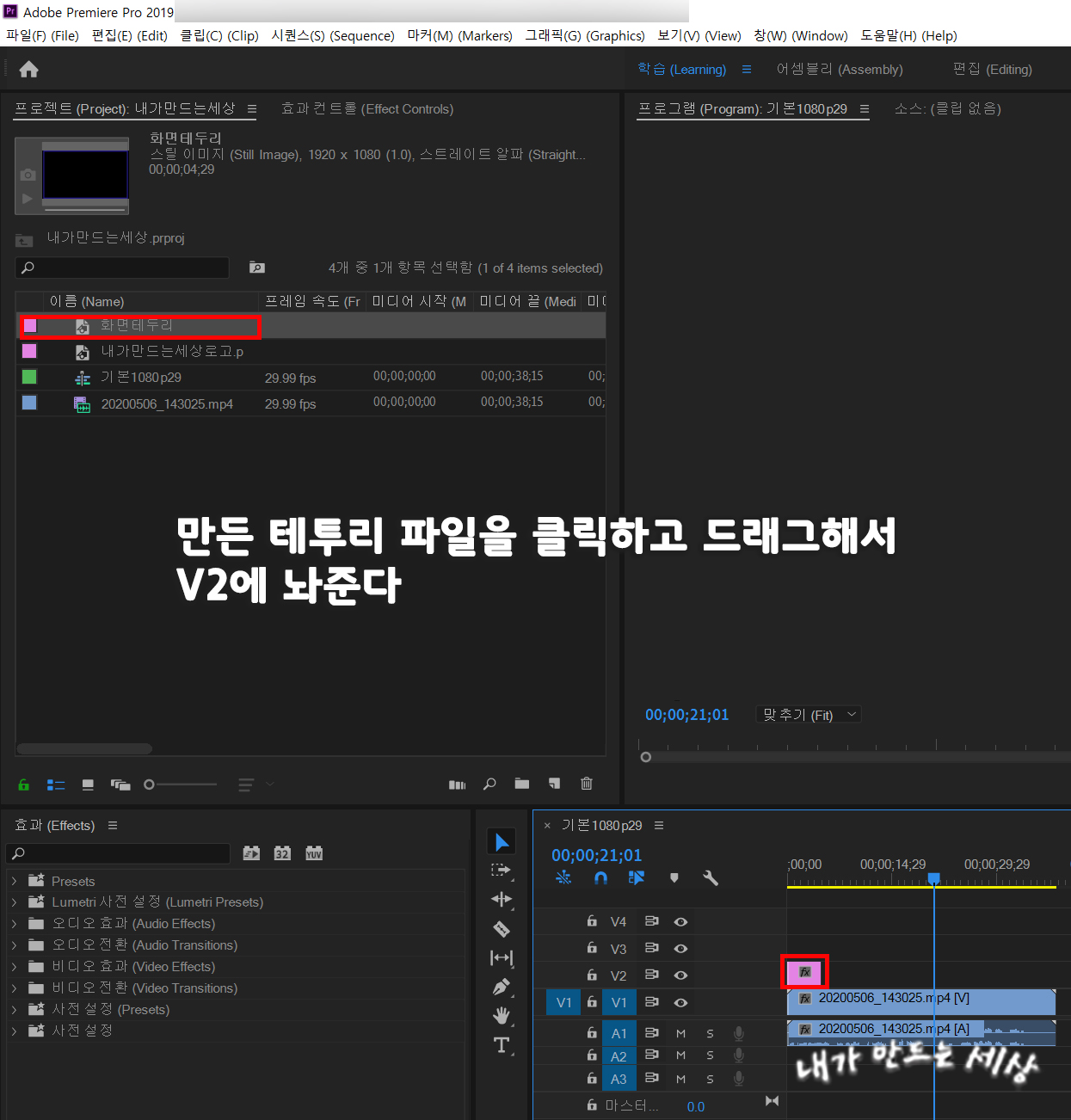 브이로그 영상을 만들거나 유튜브 영상을 만들 때 종종 유용하게 사용하는 영상에 테두리 만드는 방법에 대해 알아봅시다. 프리미어프로로 영상 화면에 테두리 만들기를 해봅시다.