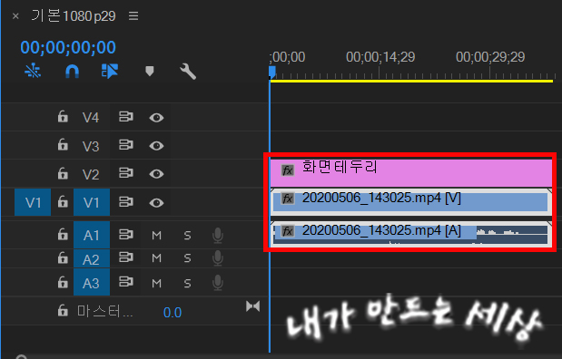1. 프리미어프로를 실행하고 시퀀스를 만들어서 영상을 불러옵니다