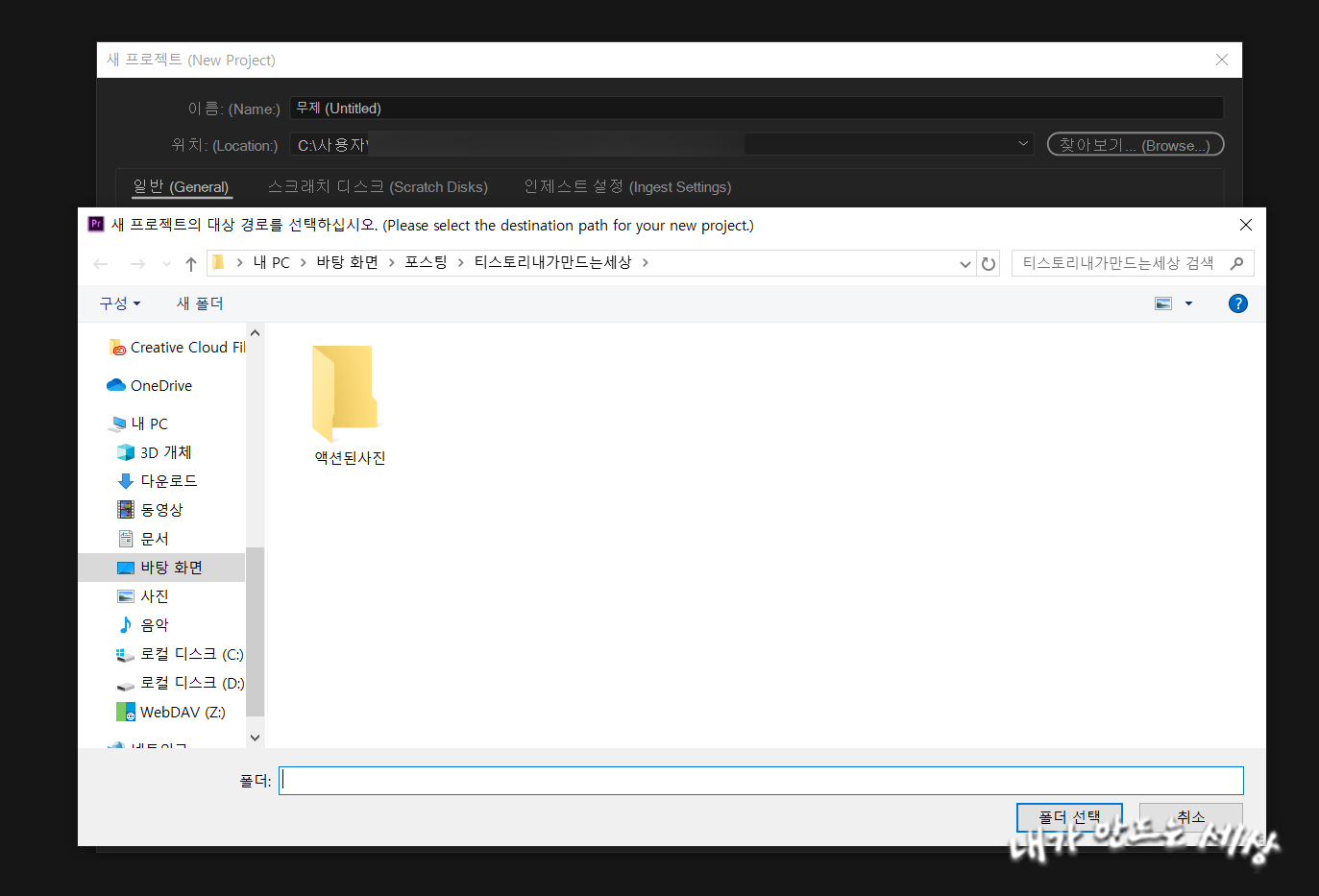 5. 프리미어프로 왼쪽 하단에 프로젝트에 본인이 설정한 이름이 나옵니다