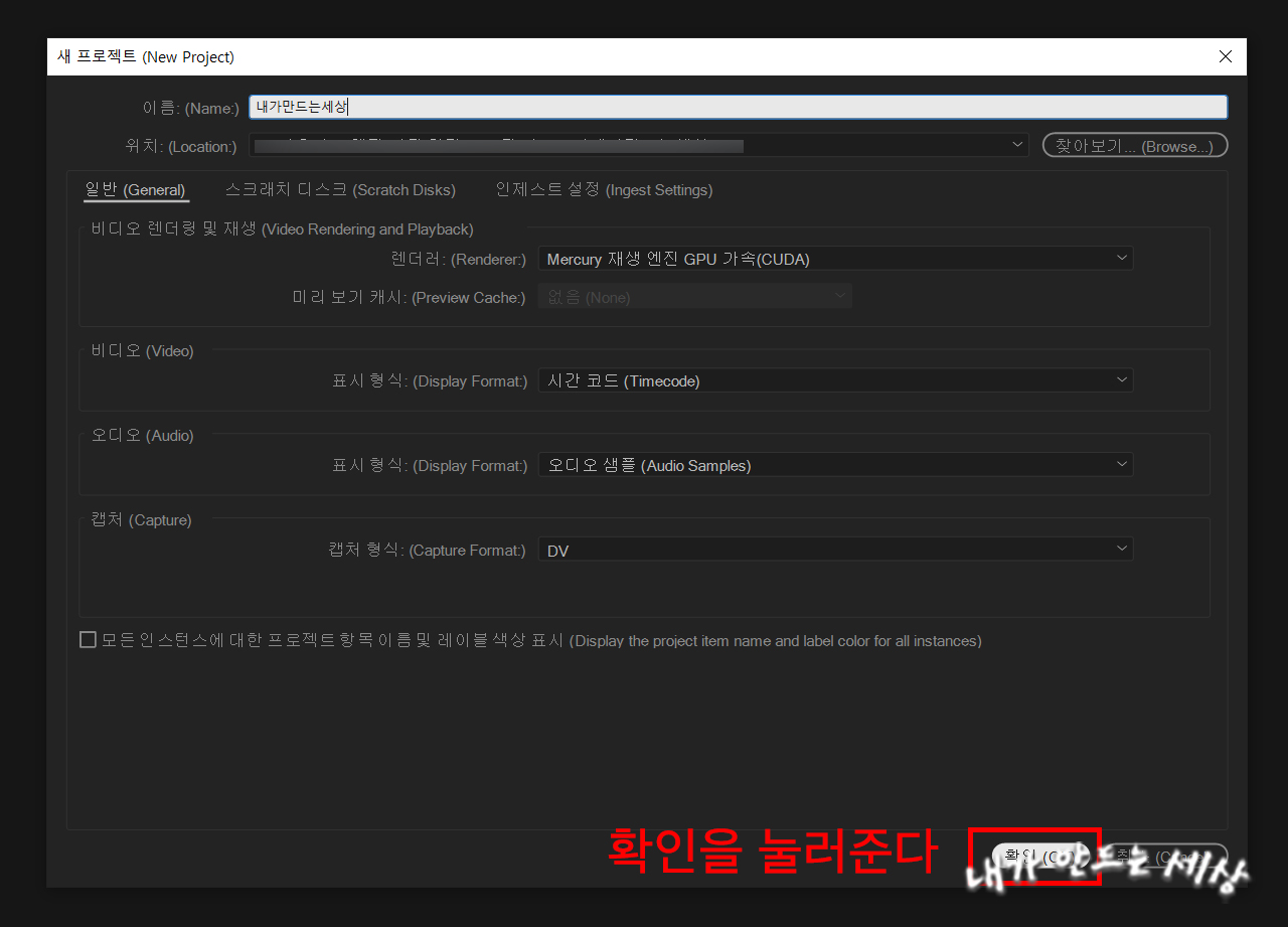 4. 이름과 파일 저장 위치까지 다 하고 나면 아래에 OK (확인) 버튼을 클릭합니다