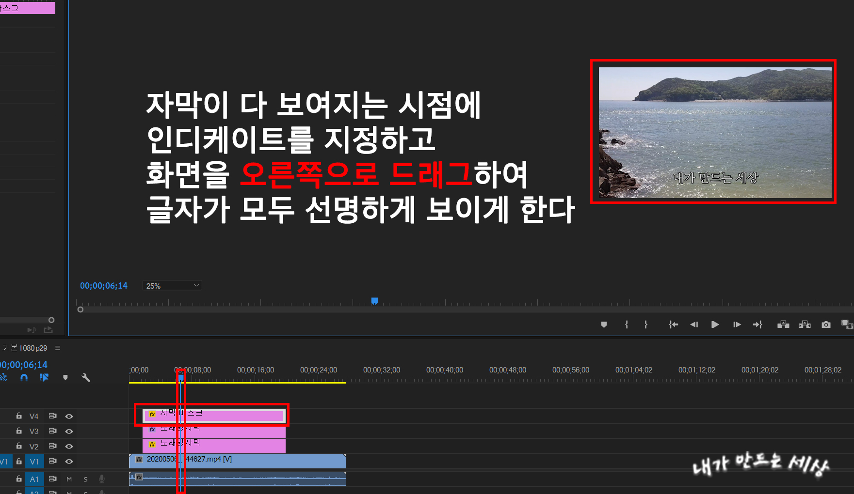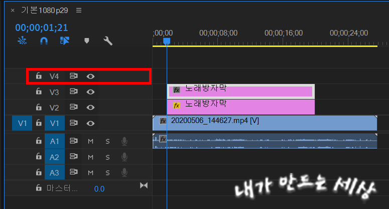 16. 타임라인에 V4 비디오 트랙이 생긴 걸 확인할 수 있습니다