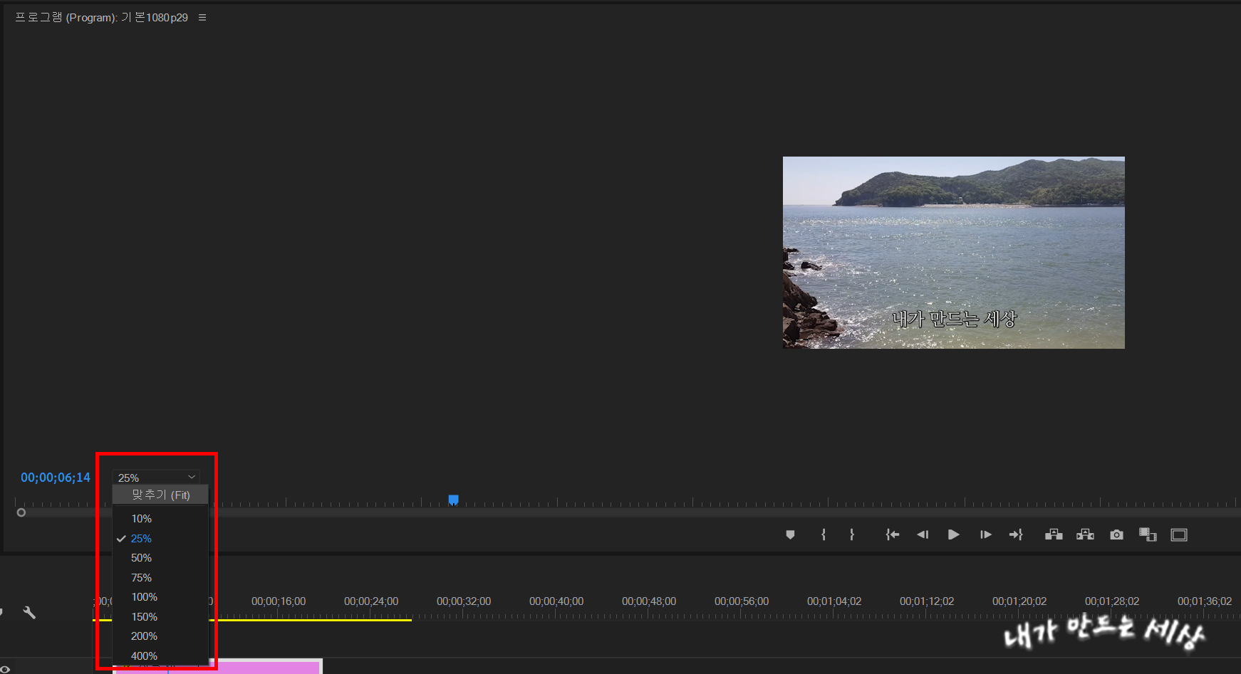 21. 영상 나오는 화면에 Fit를 클릭해서 영상 나오는 사이즈를 25%로 작게 합니다