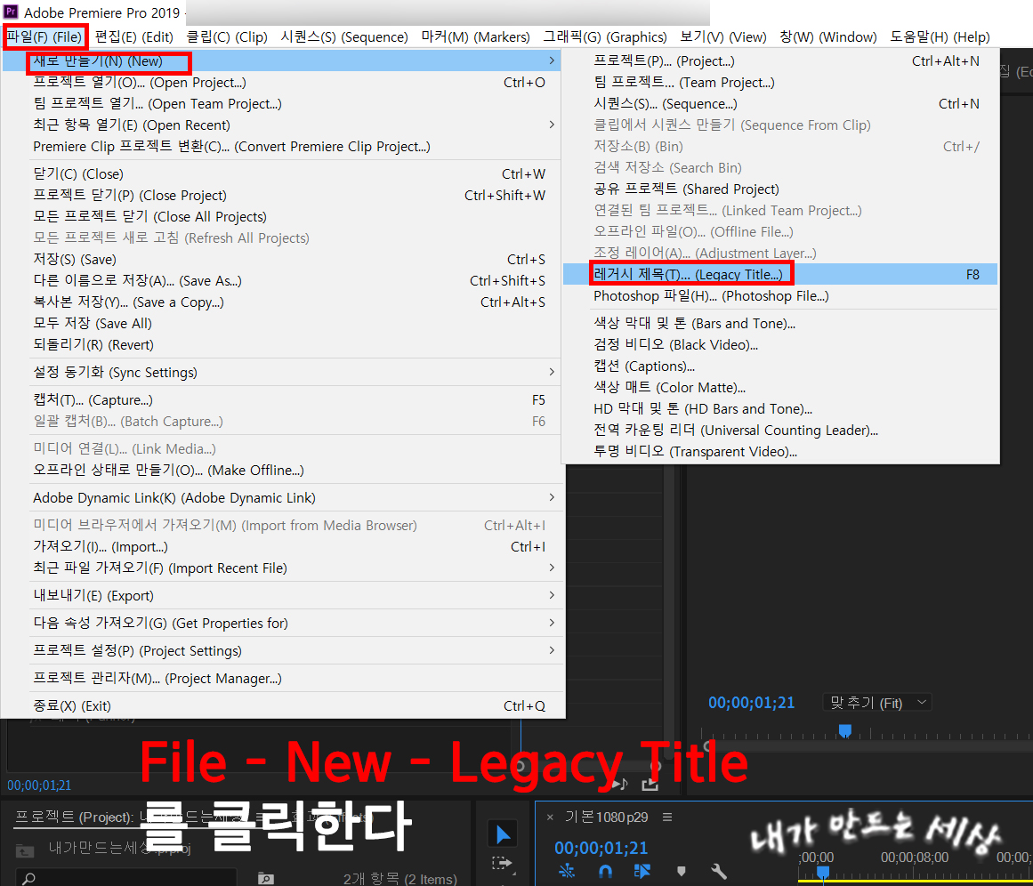 3. 상단에 메뉴에서 파일 - New(새로 만들기) - Leqacy Title(레거시 제목)를 클릭합니다