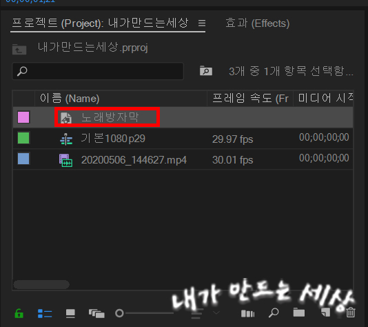 7. 프로젝트 창에 레거시 타이틀 '노래방 자막'이 생긴 걸 확인할 수 있습니다