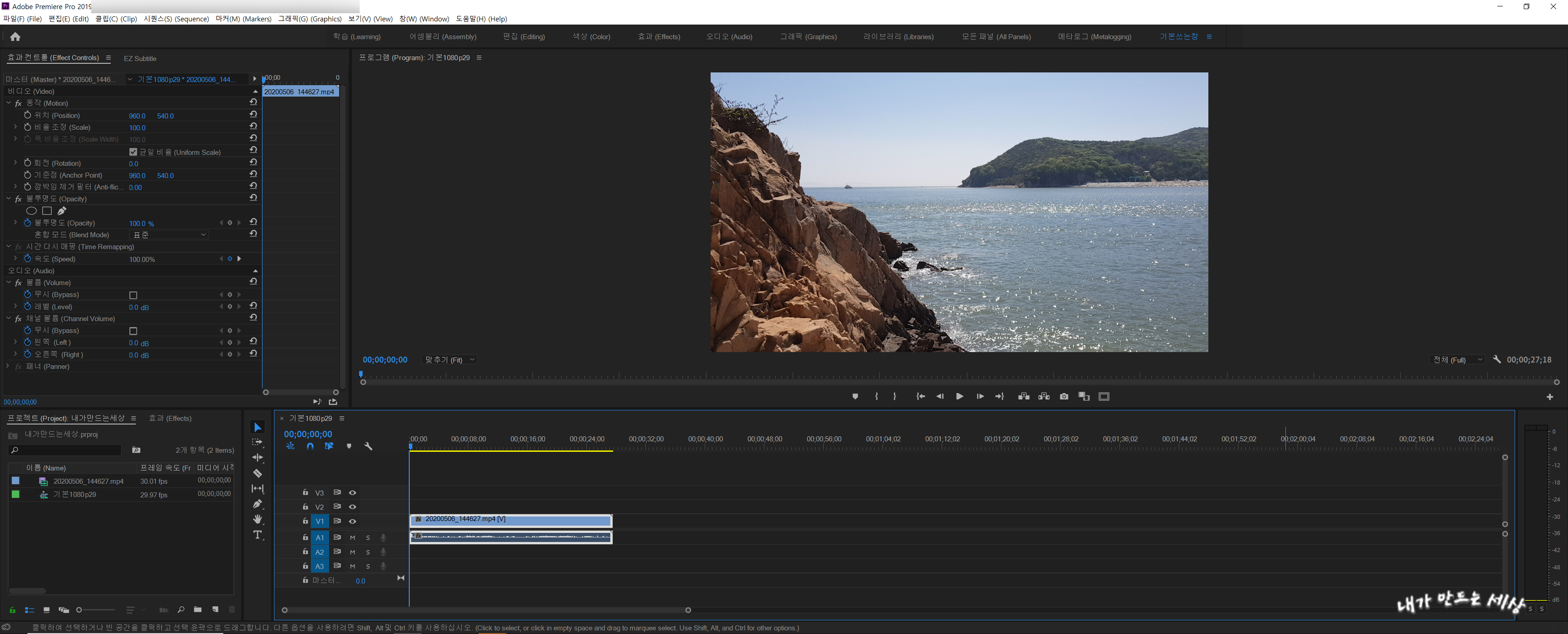 1. 프리미어프로를 실행해줍니다. 노래방 자막을 넣을 영상을 불러옵니다