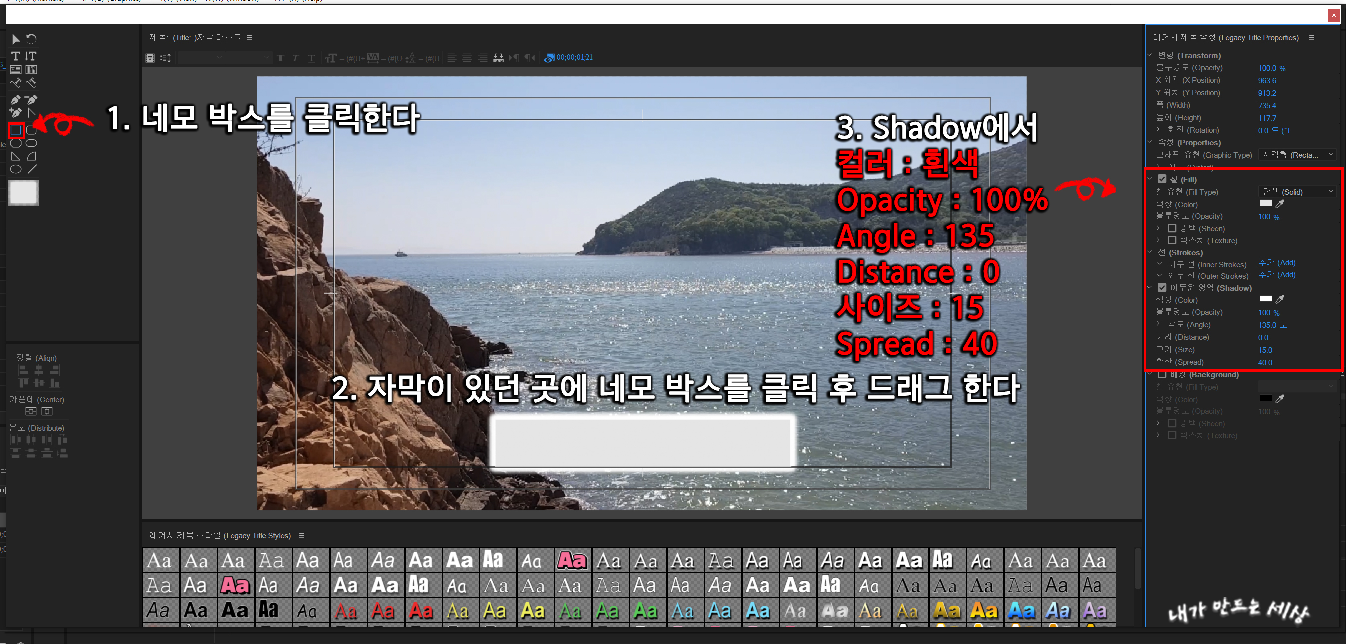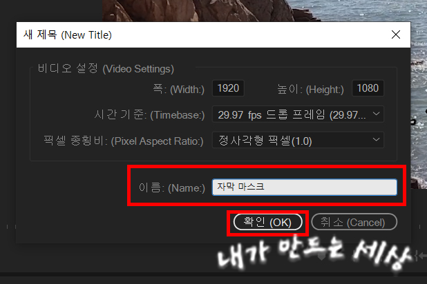 9. 이번에도 앞에서와 같이 레거시 타이틀을 하나 더 만듭니다. 저는 이름을 자막 마스크라고 했습니다