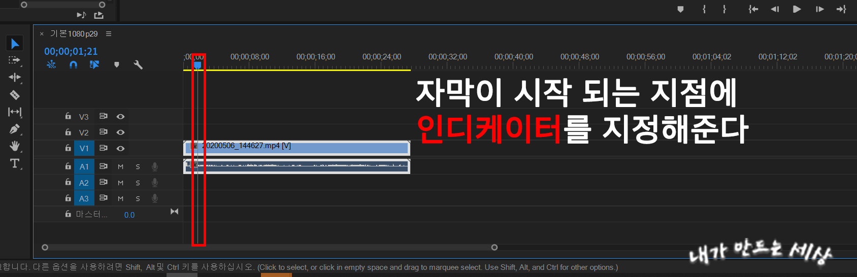 2. 자막이 시작 되는 지점에 인디케이터를 지정해줍니다