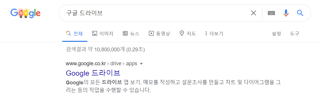 구글 계정이 있다면 인터넷 검색에서 구글 드라이브라고 검색합니다. 아래 사진에 나온 구글 드라이브 사이트로 접속합니다