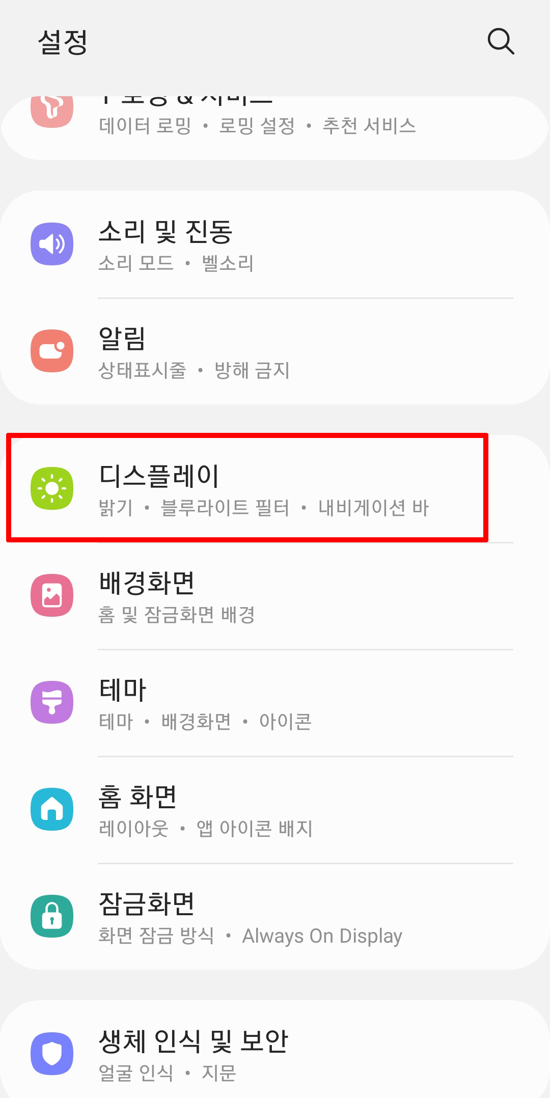 설정으로 이동했으면 아래로 내려줍니다. 디스플레이를 클릭합니다