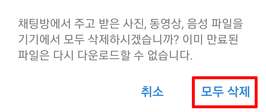 저는 전체 파일 모두 삭제를 클릭하였고 안내 문구가 나옵니다. 삭제를 원하면 모두 삭제를 클릭합니다