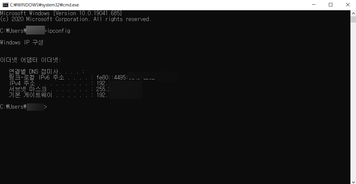 첫번째. CMD를 이용한 IP 주소 확인 방법