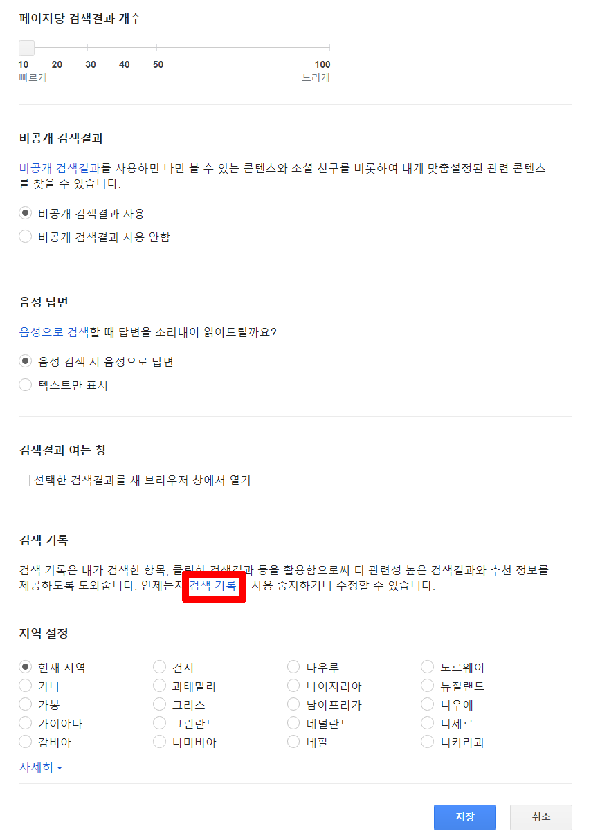 검색기록으로 들어오면 기록 저장을 클릭합니다