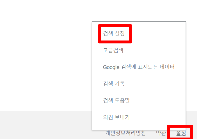 구글 접속 된 상태에서 왼쪽 맨 아래에 있는 설정을 클릭합니다. 그러면 사진처럼 창이 생기는데 맨 위에 있는 검색 설정을 클릭합니다
