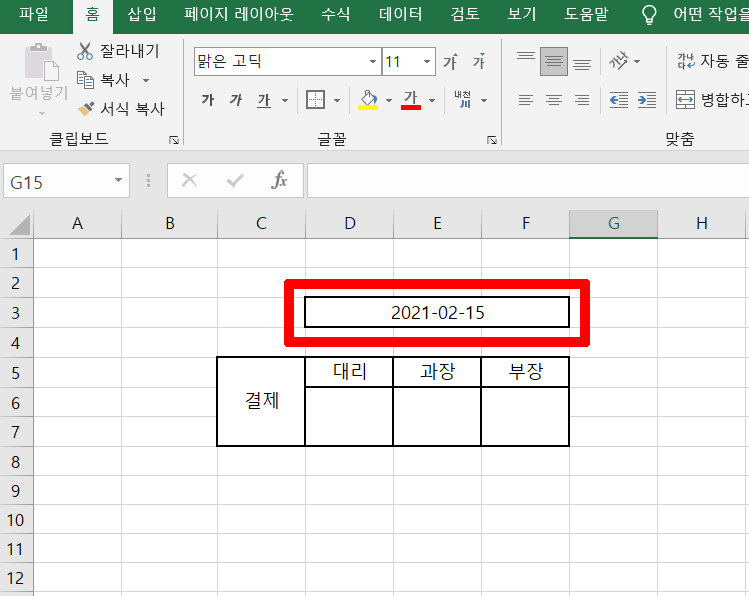 입력해주고 엔터키를 치면 오늘 날짜로 변경된 걸 확인할 수 있습니다
