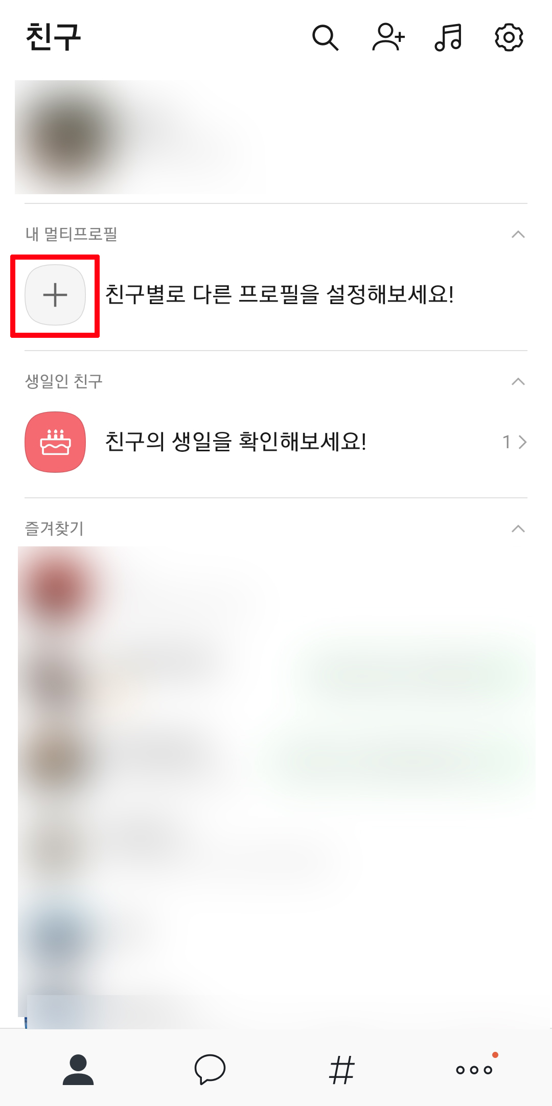 친구 목록에 새로 추가한 프로필이 생성된 걸 확인할 수 있습니다. 프로필 추가는 총 3개까지 가능합니다