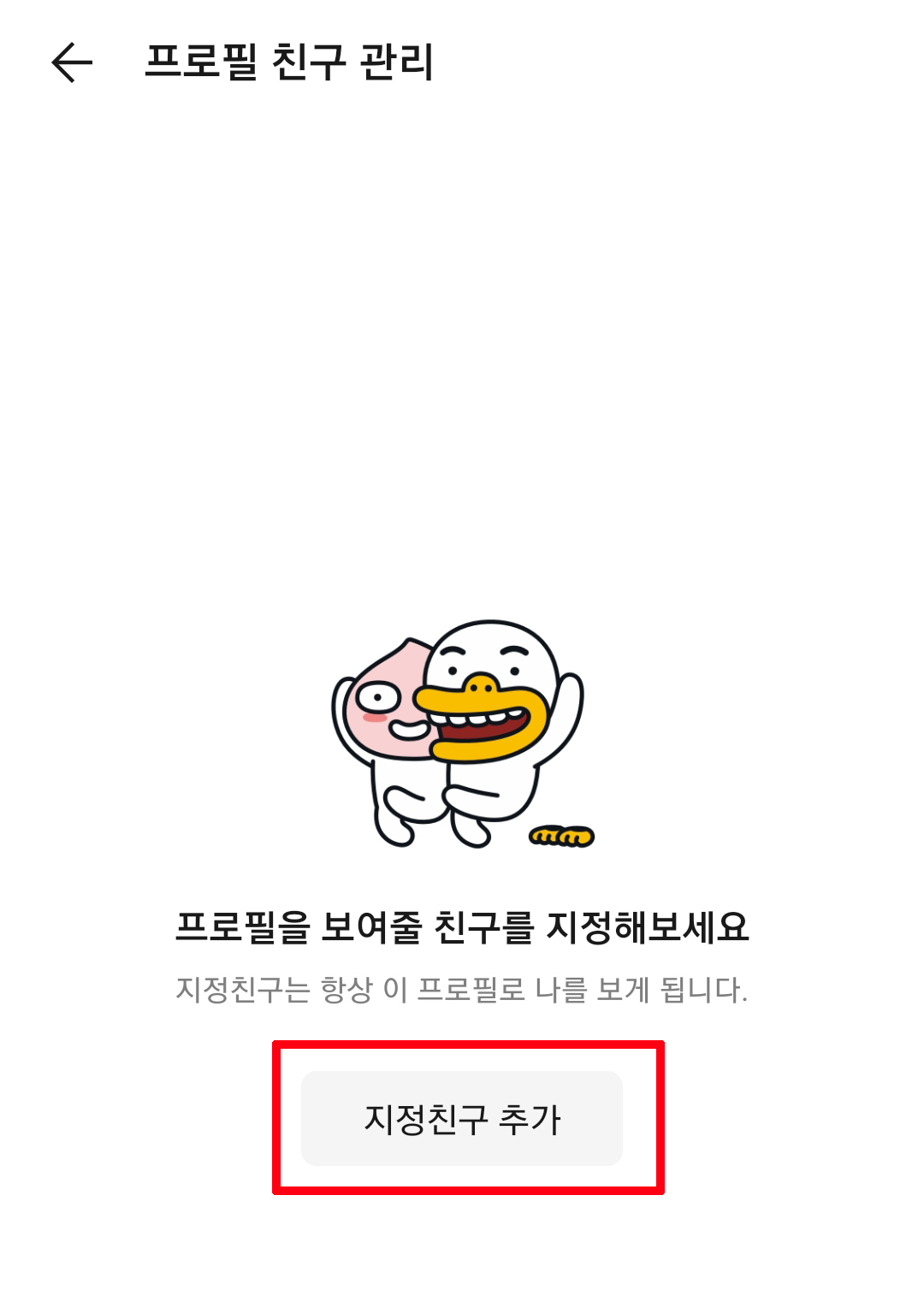 프로필 관리에서 중간에 있는 지정친구 추가를 클릭합니다