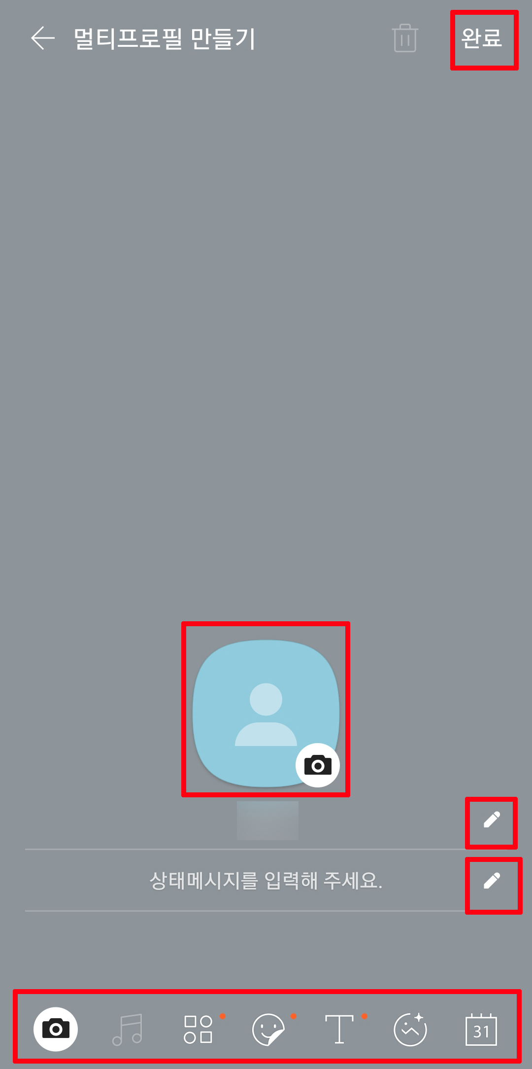 프로필을 다 만들었으면 오른쪽 위에 있는 완료를 클릭합니다