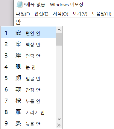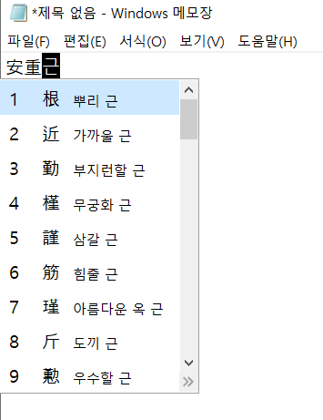 컴퓨터에서 글자를 입력할 수 있는 창을 띄워 놓습니다. 저는 메모장을 사용했습니다. 한자로 변환하고 싶은 한글 이름을 한글자를 입력하고 키보드 Alt키 옆에 있는 한자키를 클릭합니다