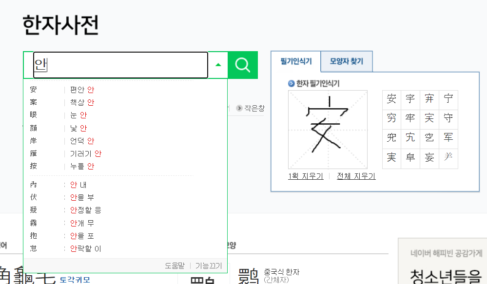이게 번거로우신 분들은 검색창에 네이버 한자 사전이라고 검색하면 나옵니다