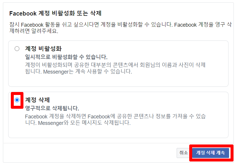 PC에서 페이스북 계정 탈퇴 하는 법