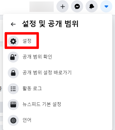 아래에 있는 설정과 공개 범위를 클릭합니다
