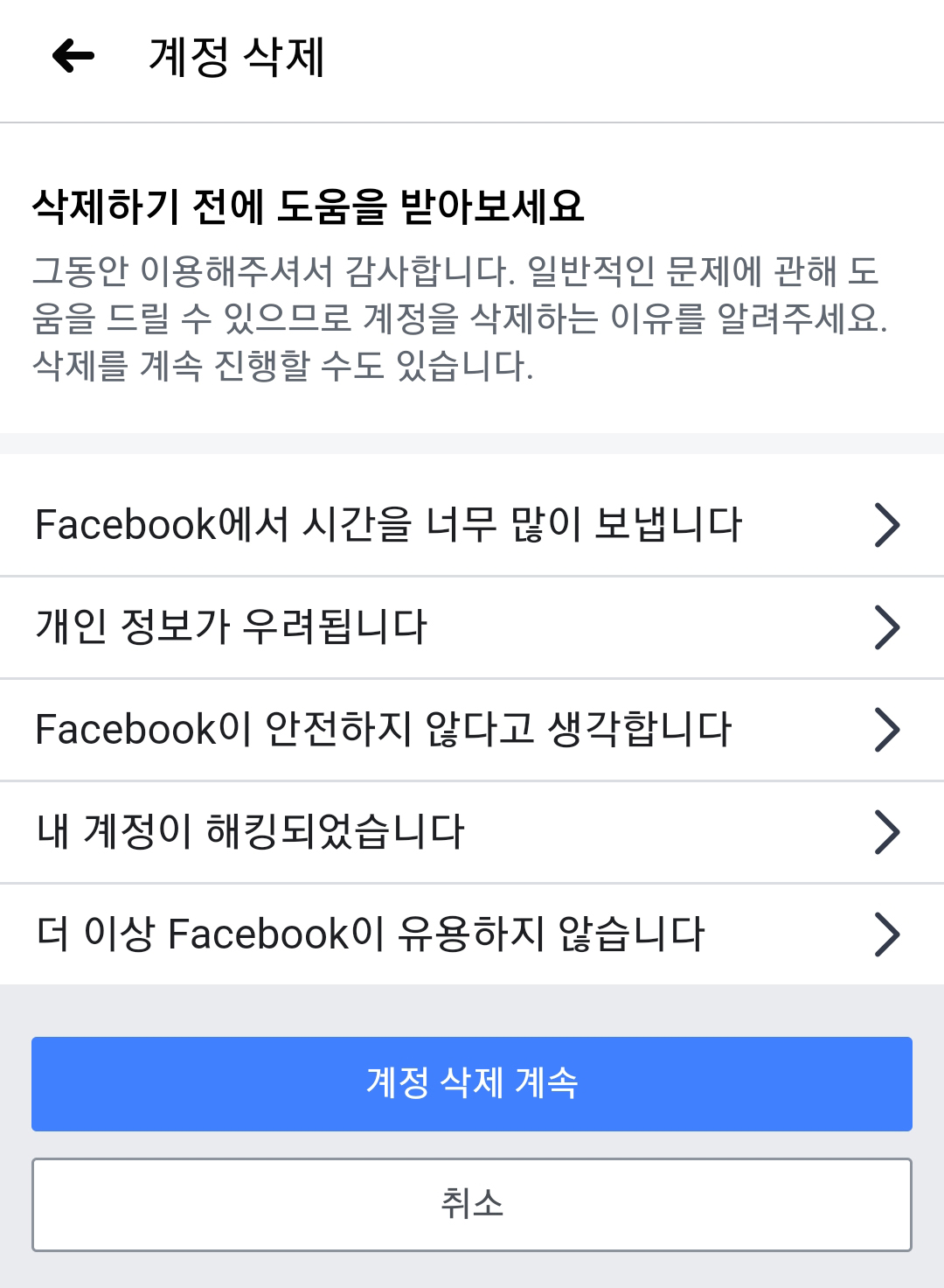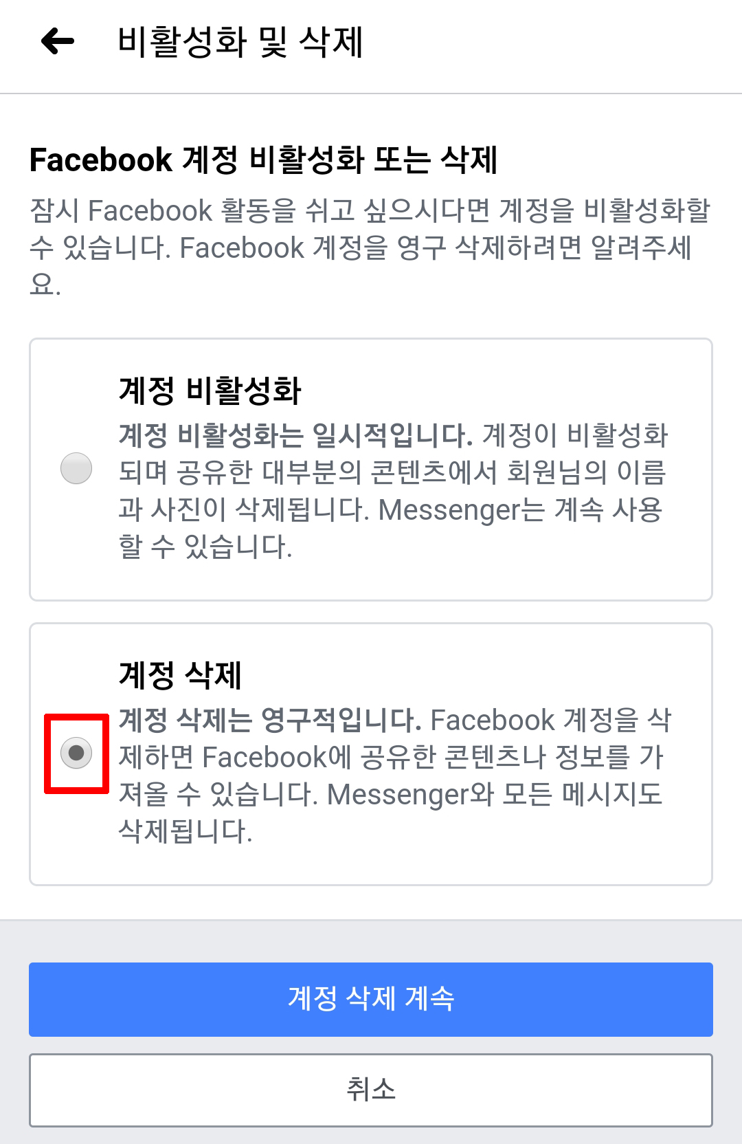 모바일에서 페이스북 탈퇴 하는 법