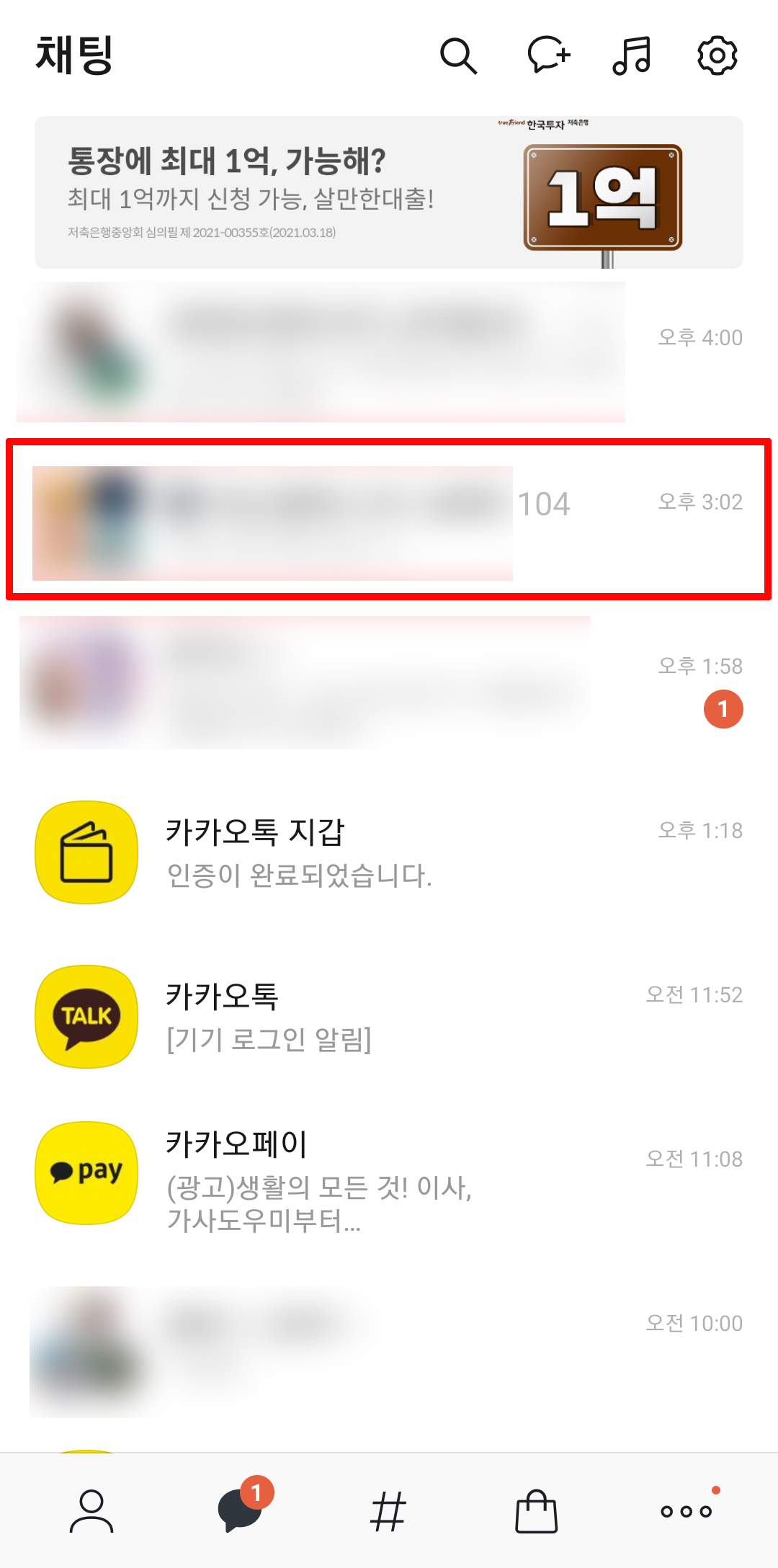 카카오톡 메시지 알림 끄기 설정 첫번째 방법