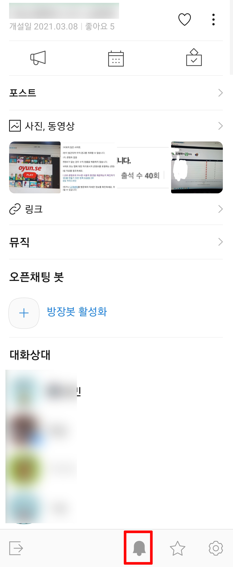 알림이 꺼진 상태면 종모양이 하얀색으로 바뀌고 줄이 생깁니다. 다시 알림음을 켜고 싶다면 종모양 아이콘을 클릭하면 됩니다