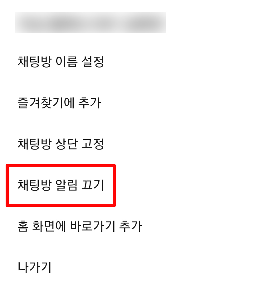 그럼 창이 하나 열리고 4번째에 있는 채팅방 알림 끄기를 클릭합니다